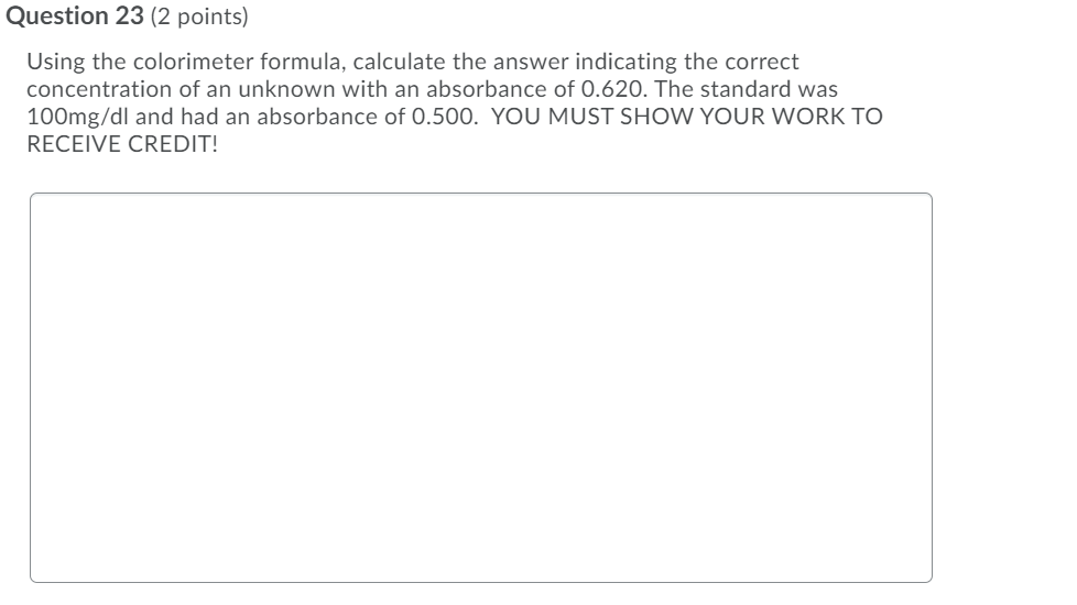 Solved Question 23 (2 points) Using the colorimeter formula,